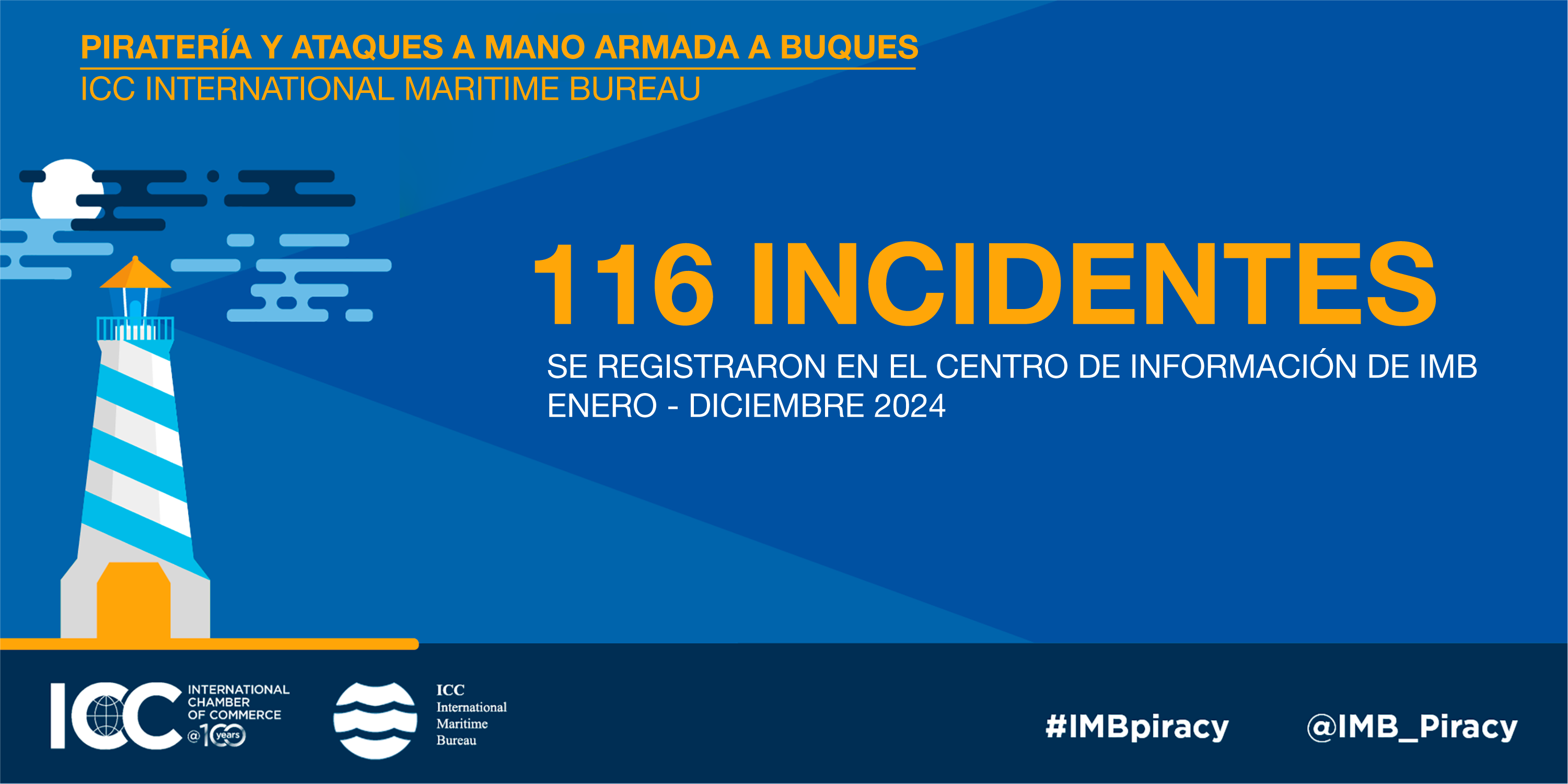 La Oficina Marítima Internacional (IMB) ha informado de un descenso en los incidentes globales de piratería marítima y robo a mano armada registrados durante 2024. Según el último informe anual publicado este mes de enero, se contabilizaron 116 incidentes, frente a 120 en 2023 y 115 en 2022.