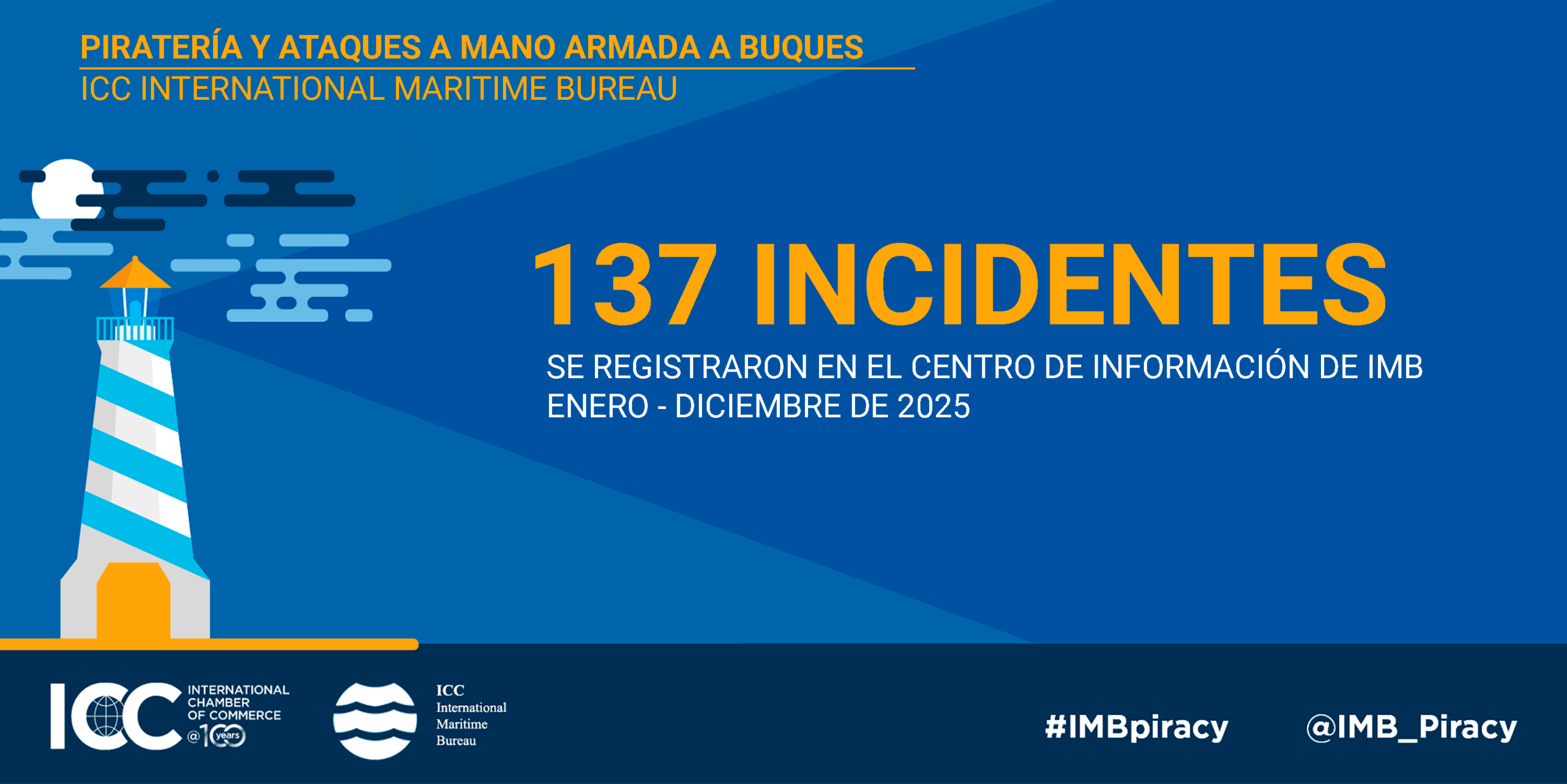 Los ataques piratas contra buques mercantes aumentaron un 18% respecto a 2024, según la edición más reciente del Informe Anual sobre Piratería y Robos a Mano Armada del International Maritime Bureau (IMB) correspondiente al año 2025. El informe registra un total de 137 incidentes, frente a los 116 de 2024 y los 120 de 2023, la mayoría de los cuales (58%) se produjo en aguas del estrecho de Singapur.