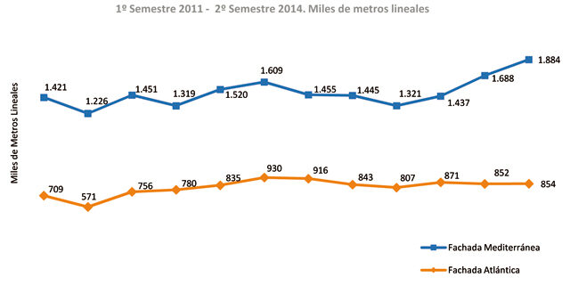 Entre las conclusiones más importantes que se desprenden del informe, se observa que 2014 profundizó en las diferencias entre las dos fachadas: un comportamiento muy positivo de la Mediterránea, con notables aumentos tanto de la demanda como de la oferta de transporte, frente a la persistente caída de demanda en la fachada Atlántica, a pesar de mantenerse la capacidad de la oferta.